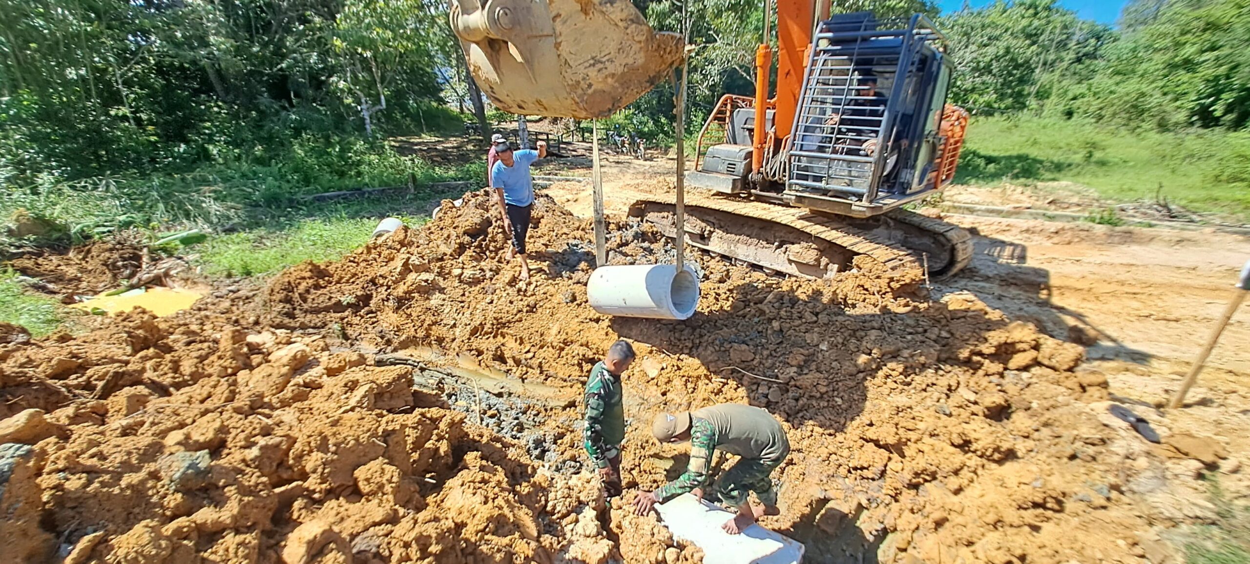 Pada Rabu (28/05), suasana di lokasi pengerjaan memancarkan energi optimisme dan sinergi yang luar biasa. Terlihat dengan jelas harmoni tak terpisahkan antara jajaran Tentara Nasional Indonesia dan masyarakat setempat. Alat berat ekskavator, dengan lengan mekanisnya yang lincah, bergerak gesit menata material konstruksi, menggali parit, dan merapikan pondasi. Sementara itu, di berbagai sudut proyek, personel Satgas TMMD berpadu dengan warga lokal, bahu-membahu dalam semangat gotong royong, menyusun dan memasang gorong-gorong beton satu per satu.