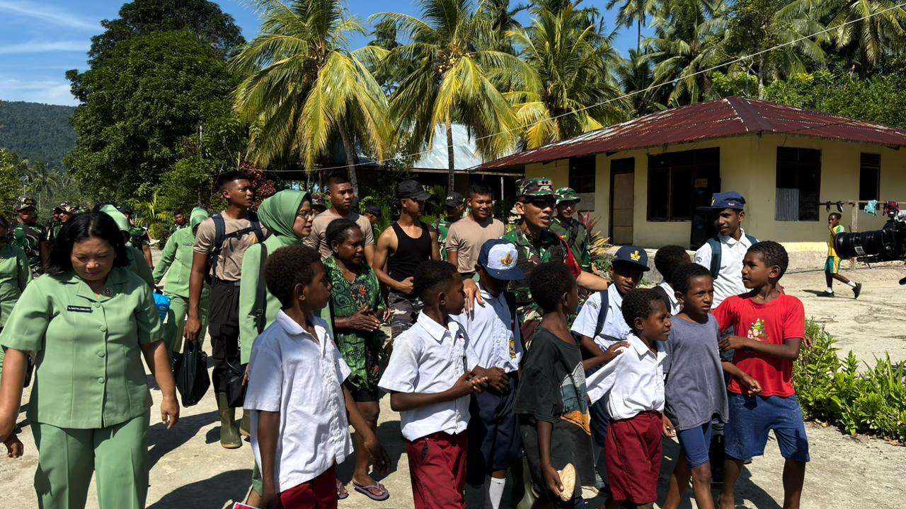 Dalam kunjungan ini, Dansatgas didampingi oleh jajaran pengurus Persit Kartika Chandra Kirana Cabang XL, yang menunjukkan komitmen tinggi dalam mendukung program pembangunan desa. Kunjungan ini disambut dengan meriah oleh anak-anak sekolah setempat, yang dengan penuh semangat menyambut kedatangan rombongan dan beriringan menuju rumah Ibu Evelina Surawi, salah satu penerima manfaat dari program pembangunan rumah dalam TMMD.