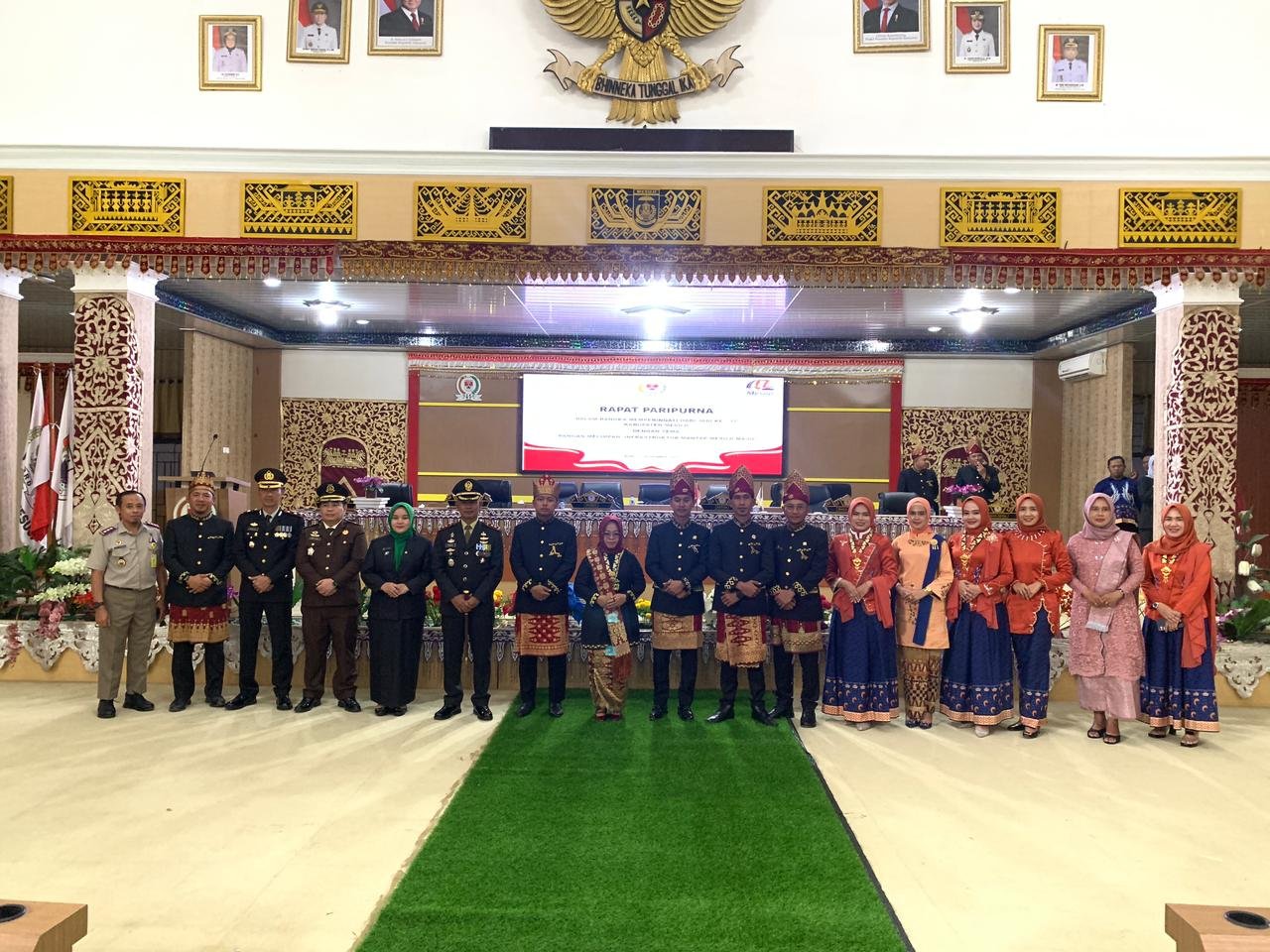 Mesuji (Mesuji) — Komandan Kodim 0426/Tulang Bawang, Letkol Inf Syurya Dharma, bersama Ketua Persit Kartika Chandra Kirana Cabang XLIX Dim 0426/TB Ny. Rini Syurya Dharma menghadiri sidang paripurna memperingati Hari Ulang Tahun (HUT) ke-17 Kabupaten Mesuji. Kegiatan berlangsung di Lantai II Gedung DPRD Mesuji, Desa Wiralaga Mulya, Kecamatan Mesuji, pada Rabu, 26 November 2025. Perayaan HUT ke-17 Mesuji tahun ini mengusung tema Pangan Melimpah, Infrastruktur Mantap, Mesuji Maju.