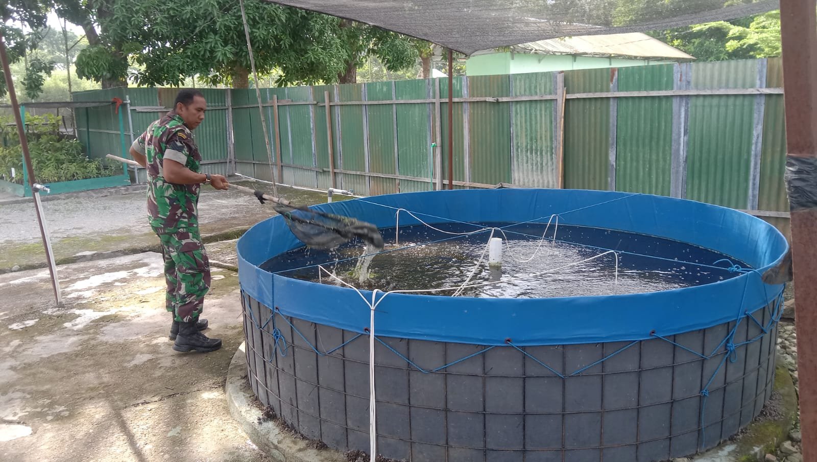 Sidrap – Anggota Makodim 1420/Sidrap bersama jajaran Koramil, secara aktif melaksanakan kegiatan perawatan dan pemeliharaan tanaman, serta budi daya ikan nila. Kegiatan ini merupakan bagian dari program ketahanan pangan yang digalakkan dengan memanfaatkan lahan kosong di lingkungan Markas Kodim maupun Koramil. Jumat (21/11/2025).