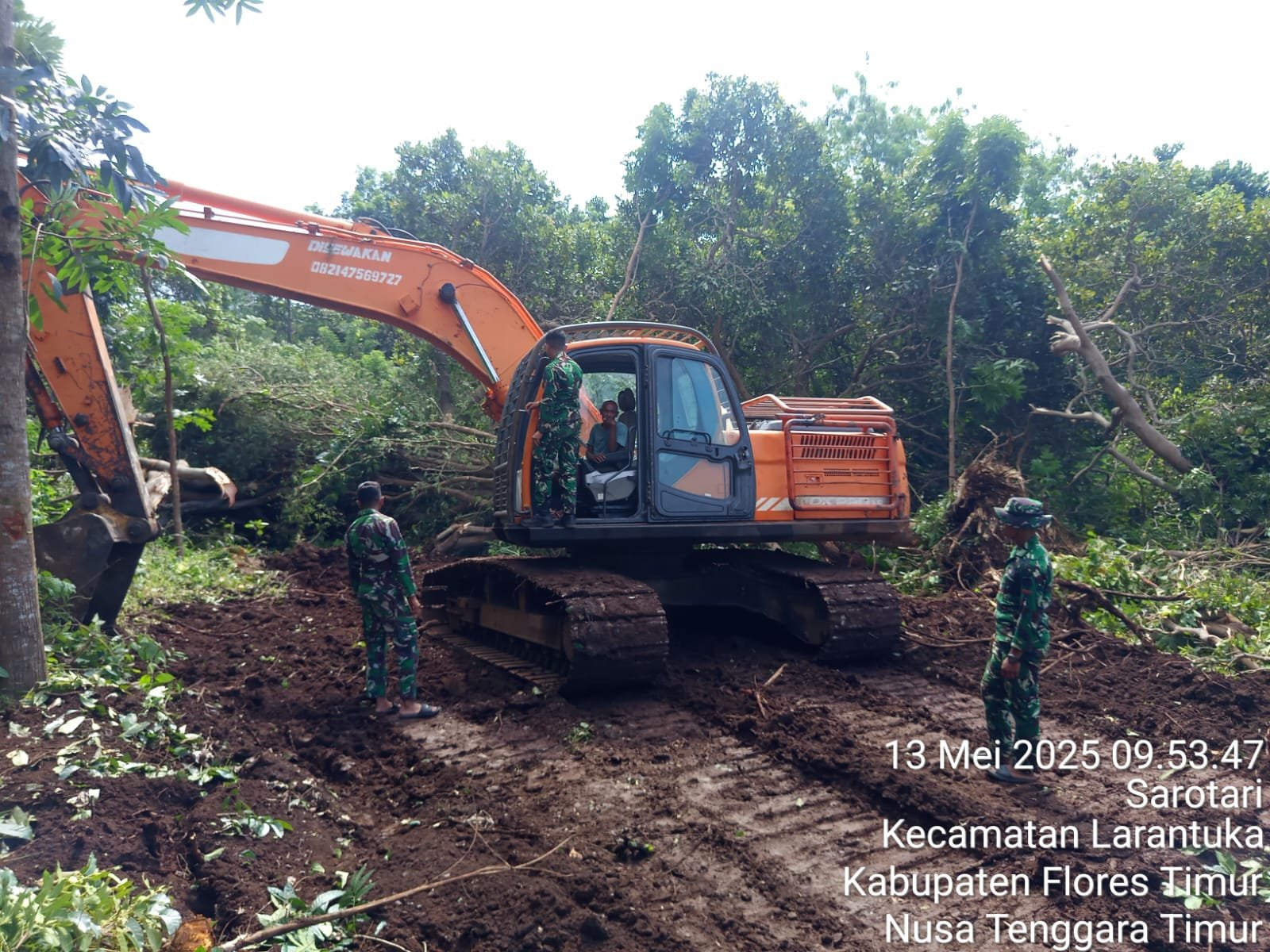 Flotim – Pelaksanaan TMMD Ke-124 Tahun 2025 di wilayah Kodim 1624/Flotim yang berlangsung di Kelurahan Sarotari, Kecamatan Larantuka, Kabupaten Flores Timur terus dikebut hingga memasuki pertengahan Mei. Salah satu sasaran utama, yakni pembukaan jalan baru sepanjang 4 kilometer dengan lebar 8 meter yang menghubungkan Kelurahan Sarotari dengan Desa Riangkemi, kini dikerjakan secara intensif dengan dukungan alat berat excavator, Selasa (13/05/2025).