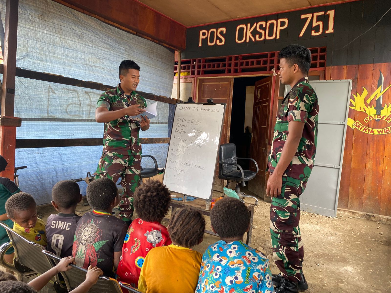Membangun Masa Depan: Satgas Yonif 751/VJS Gelar Kegiatan Calistung untuk Generasi Muda di Oksop