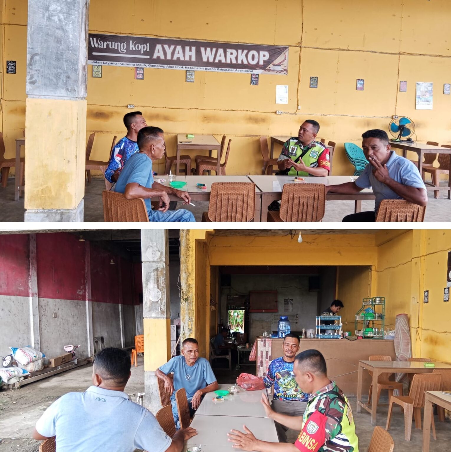 Seperti yang dilakukan Babinsa Posramil 06/Bubon Kodim 0105/Aceh Barat, Sertu Endi Suhendi, yang menjalin keakraban dan kebersamaan dengan warga di salah satu warung kopi di Desa Alue Lhok, Kecamatan Bubon, Kabupaten Aceh Barat, Selasa (17/02/2026).