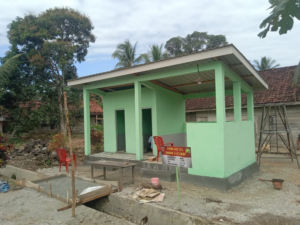 Menjelang berakhirnya TMMD, semangat kerja sama antara TNI dan masyarakat terus terlihat nyata dalam setiap pengerjaan, termasuk tahap finishing MCK ini.