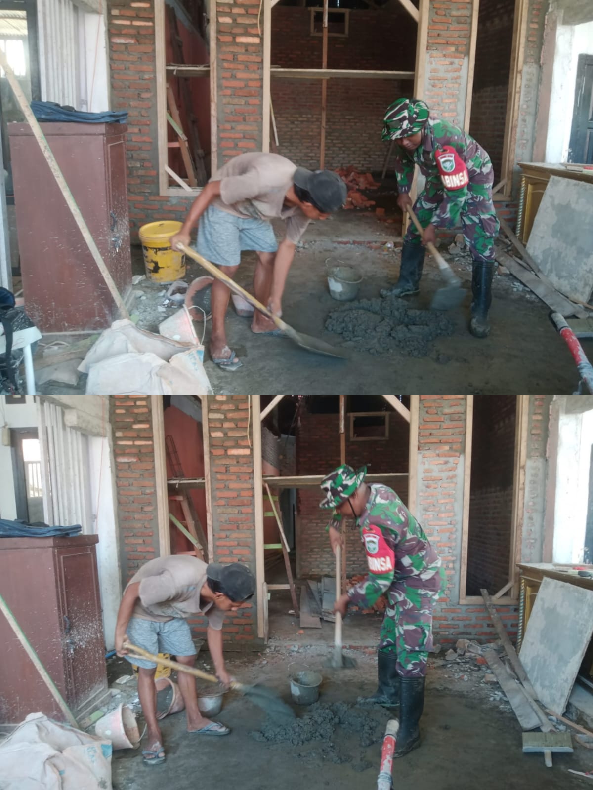 ACEH BARAT – Semangat pengabdian tetap ditunjukkan oleh Babinsa Koramil 08/Arongan Lambalek Kodim 0105/Aceh Barat, Koptu Riansyah, meskipun sedang menjalankan ibadah puasa di bulan suci Ramadan. Hal tersebut terlihat saat dirinya turut membantu warga mengaduk semen guna mempercepat proses pembangunan rumah milik salah satu warga di Desa Ujung Simpang, Kecamatan Arongan Lambalek, Kabupaten Aceh Barat, Kamis (19/03/2026).