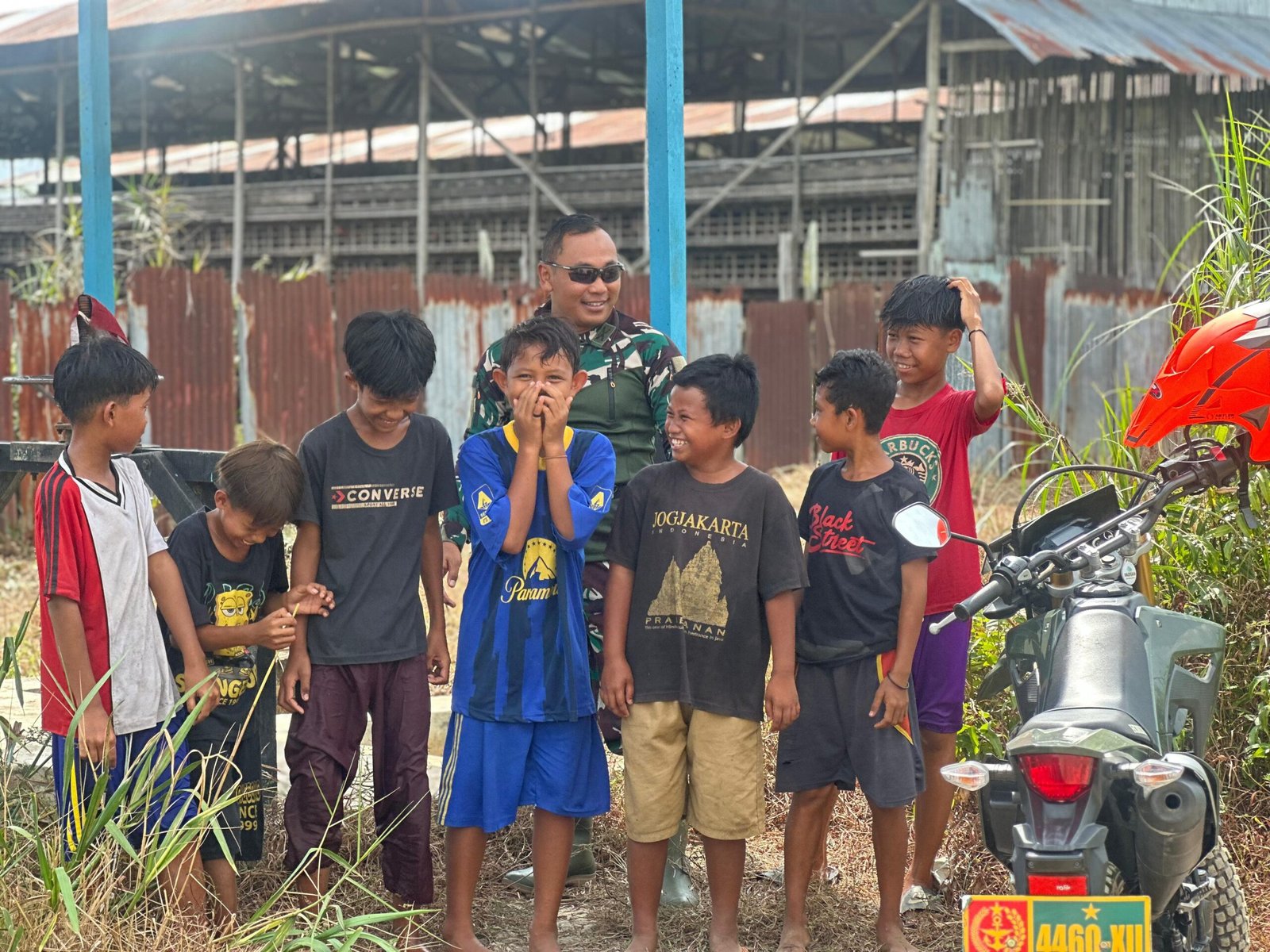 “Kalian harus rajin belajar dan punya semangat pantang menyerah. Tidak ada yang tidak mungkin, asal kalian punya tekad, siapa tahu kelak bisa bergabung bersama TNI dan membangun negeri ini,” ujar Letkol Inf Benu Supriyantoko di hadapan anak-anak yang berkumpul dengan penuh perhatian.