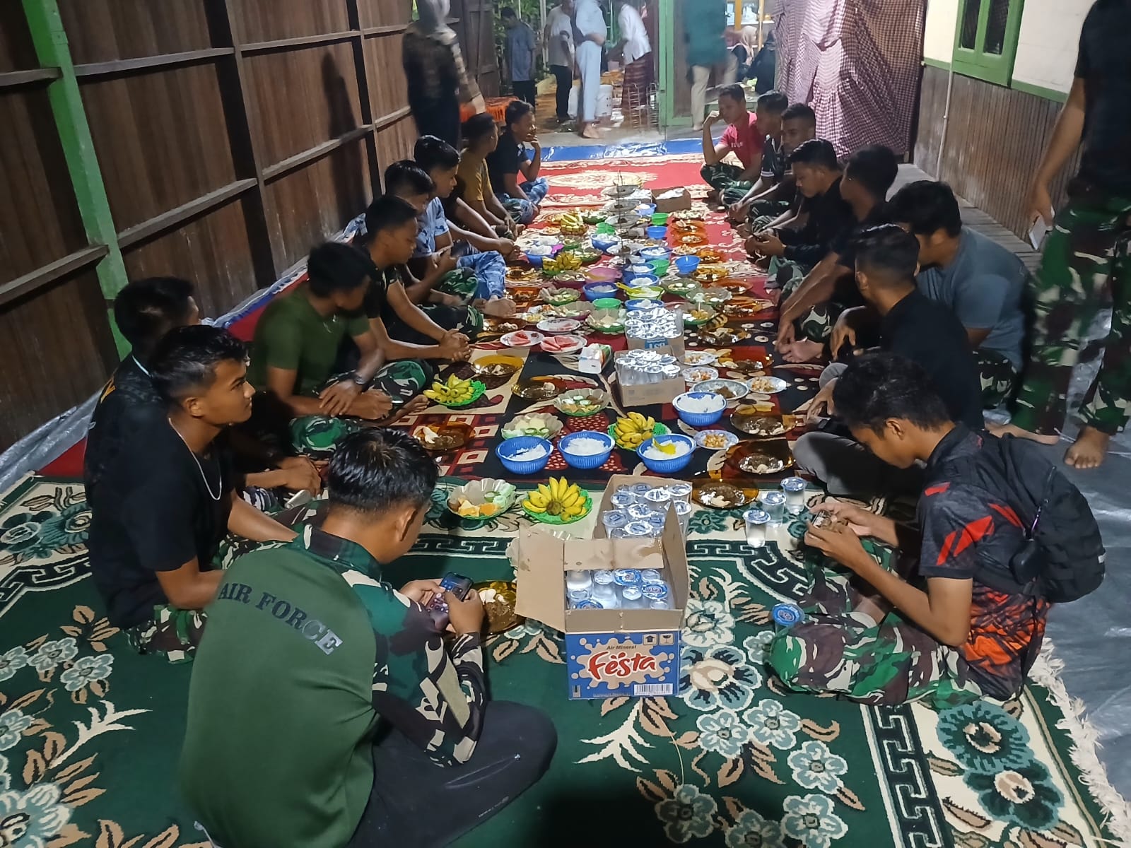 Suasana keakraban kami terasa sembari menikmati hidangan yang disajikan oleh tuan rumah,” kata Dan SSK Satgas TMMD 124 Kodim 0901/Samarinda, Kapten Arm Syamsu duha.