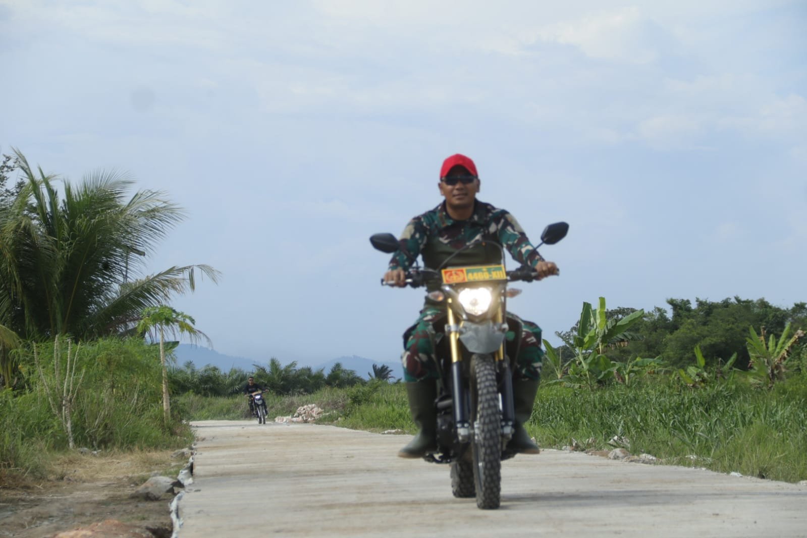 Mempawah — Komitmen Dansatgas TMMD Reguler ke-124 Wilayah Mempawah, Letkol Inf Benu Supriyantoko, S.H., dalam memastikan kualitas pembangunan di lokasi TMMD benar-benar diwujudkan. Dengan mengendarai motor trail, Dansatgas menyusuri jalan rabat beton yang tengah dikerjakan Satgas dan warga di Dusun Nikmat, Desa Sungai Purun Kecil, Kecamatan Sungai Pinyuh.