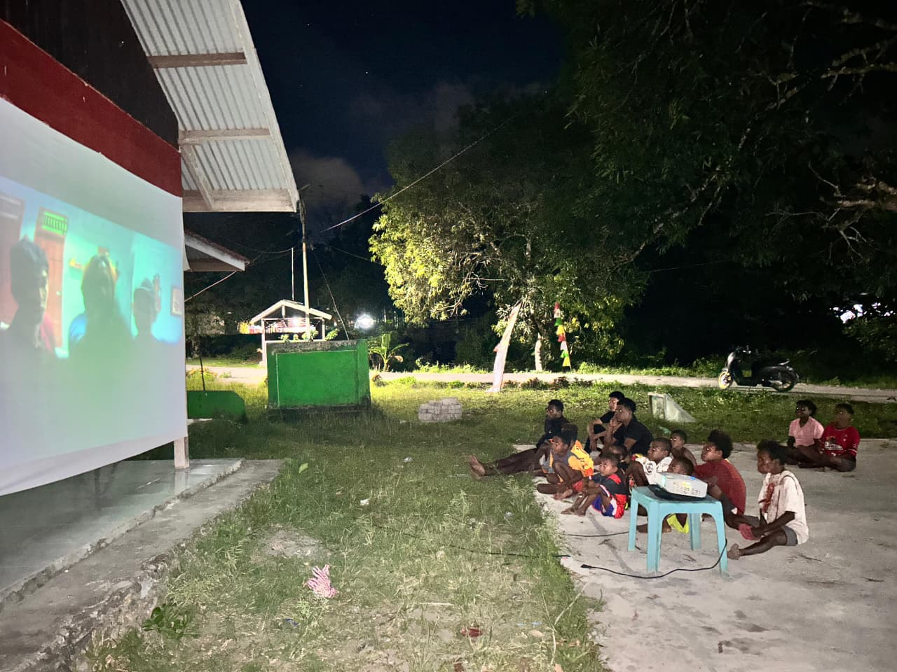 Manokwari Utara — Kegiatan nonton bareng yang diselenggarakan oleh Satgas TMMD ke-128 Kodim 1801/Manokwari bertujuan untuk mempererat solidaritas antara TNI dengan warga di Kampung Tanah Rubuh.