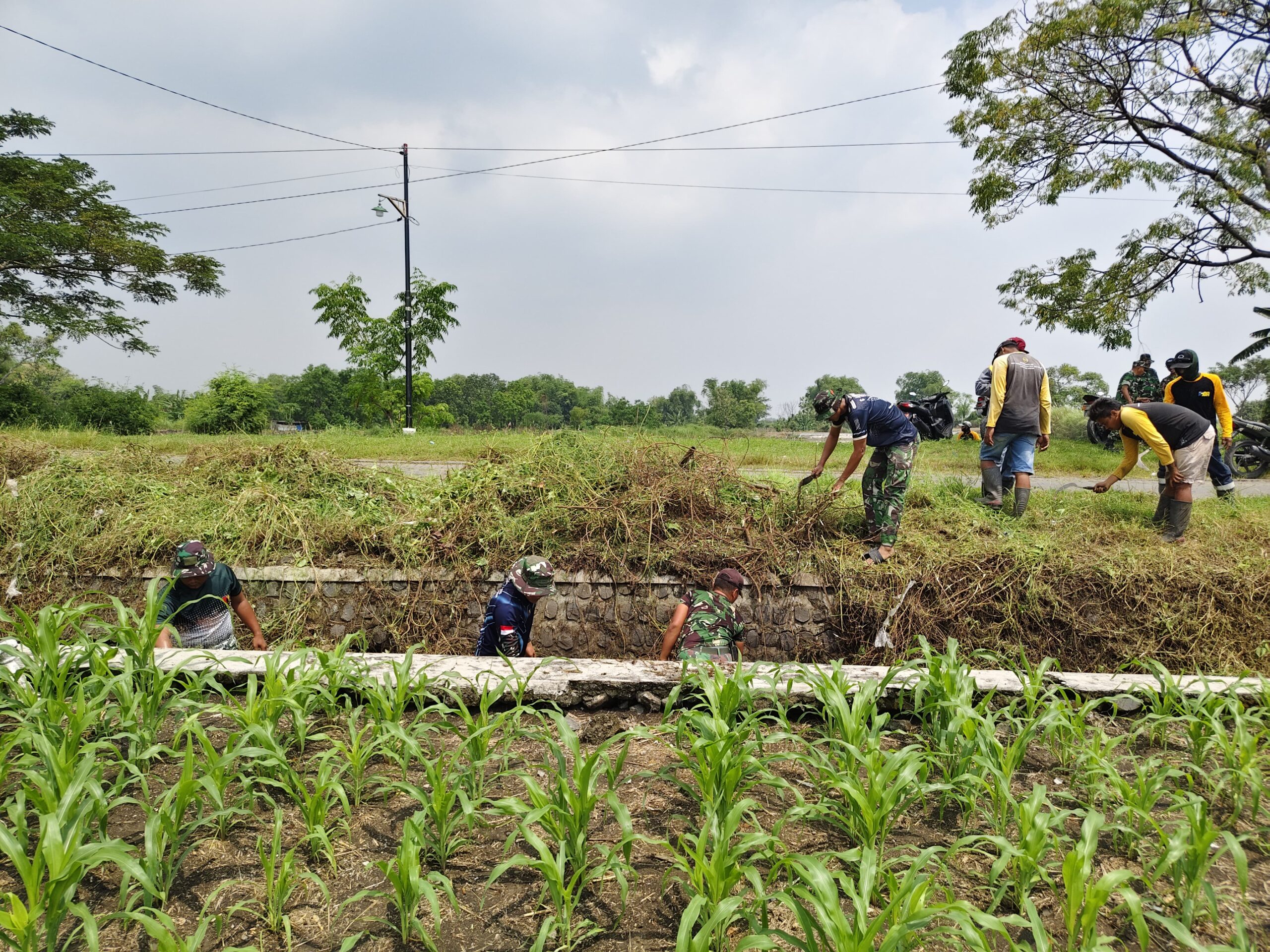 Kegiatan tersebut dipimpin oleh Serda Wayan selaku anggota Satgas TMMD, bersama dengan masyarakat lokal, termasuk Bapak Parmo. Mereka melakukan pembersihan saluran irigasi dengan menggunakan alat sederhana untuk mengangkat lumpur, sampah, dan rumput liar yang telah menghalangi aliran air.