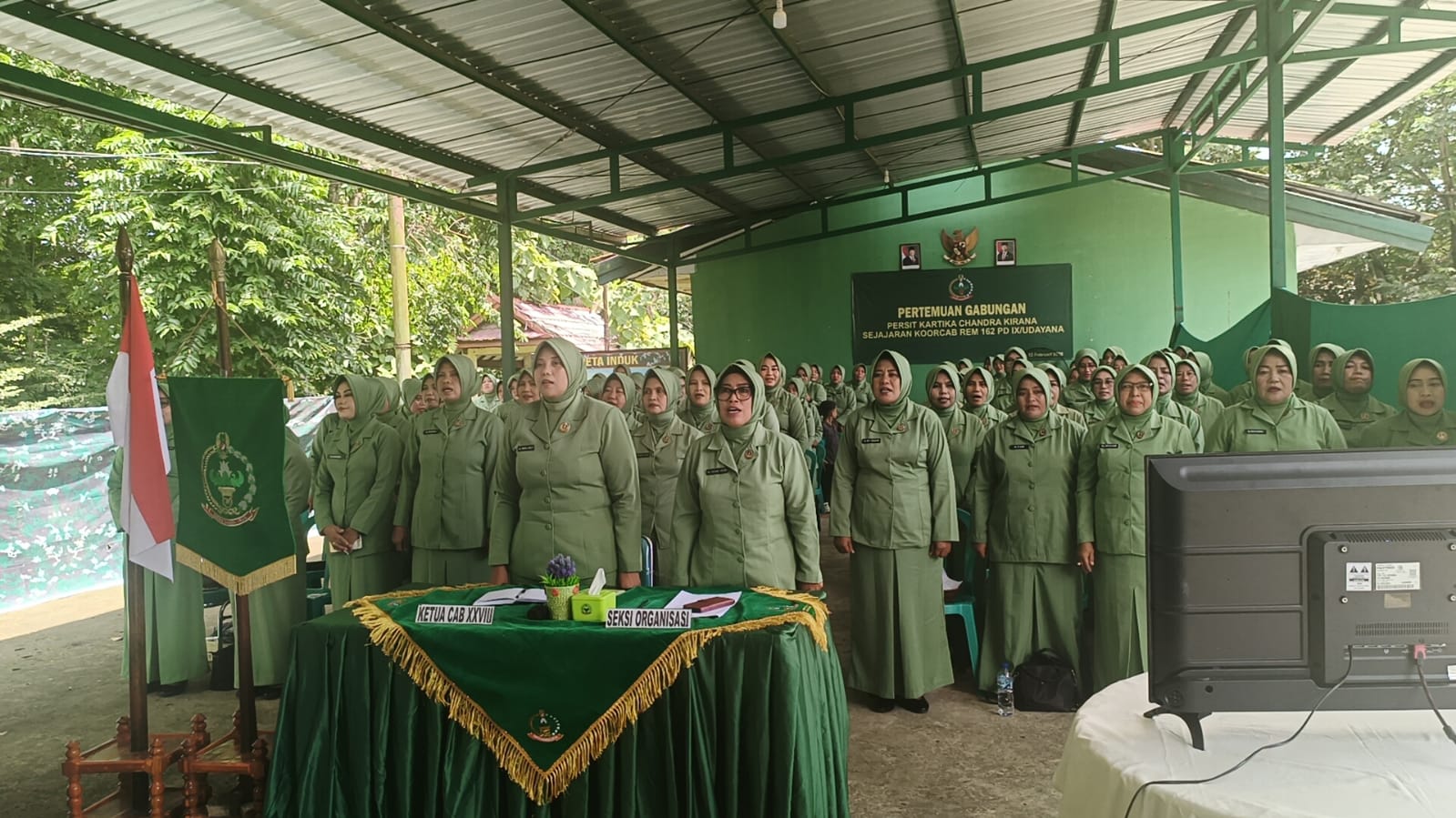 Dompu, NTB – Persit Kartika Chandra Kirana (KCK) Cabang XXVIII Dim 1614/Dompu melaksanakan kegiatan Video Conference (Vicon) melalui aplikasi Zoom dalam rangka Pertemuan Gabungan Persit KCK yang diadakan oleh Koorcab Rem 162 PD IX/UDY. Acara ini berlangsung pada Kamis, 12 Februari 2023, di Makodim 1614/Dompu, yang berlokasi di Jln. Ahmad Yani, Kelurahan Dorotangga, Kecamatan Dompu, Kabupaten Dompu dengan diikuti oleh sekitar 150 peserta.