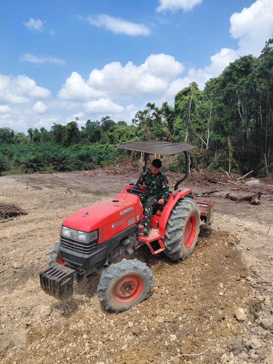 Lamandau – Salah satu anggota Satgas TNI Manunggal Membangun Desa (TMMD) Reguler ke-125 Kodim 1017/Lamandau, Praka Deka, turut ambil bagian dalam mendukung ketahanan pangan (Hanpangan) di Desa Batu Kotam dengan mengoperasikan traktor untuk mengolah lahan seluas 1 hektar, Senin (04/08/25).