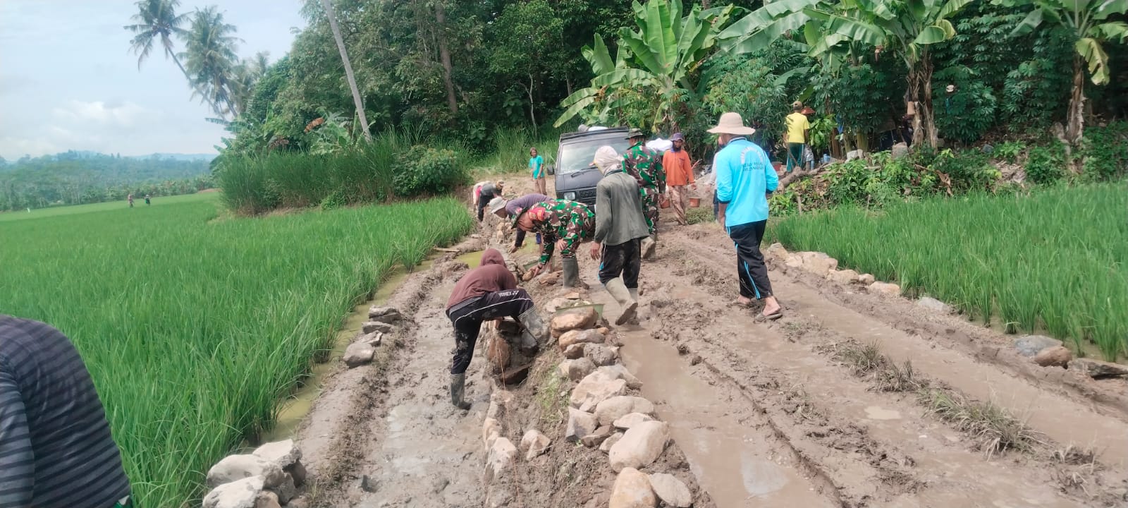 Pesawaran — Tim Satgas TMMD ke-127 TA 2026 dari Kodim 0421/Lampung Selatan terus melaksanakan pembangunan infrastruktur fisik di Desa Tanjung Rejo, Kecamatan Way Khilau, Kabupaten Pesawaran. Pada Rabu, 11 Februari 2026, kegiatan yang sedang berlangsung adalah pemasangan papan pembatas rabat beton.