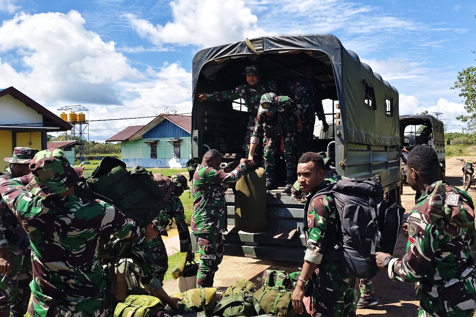 Setelah menempuh perjalanan darat selama dua jam, para personel segera melakukan pengecekan dan meletakkan perlengkapan mereka di Balai Kampung Kamno Sari yang akan menjadi tempat tinggal selama 30 hari pelaksanaan TNI Manunggal Membangun Desa (TMMD) Ke-125 Tahun Anggaran 2025.