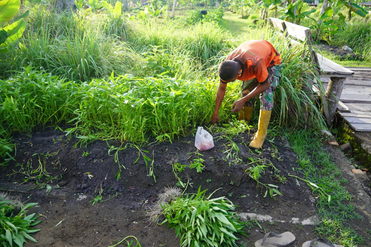 Pasca penanaman bibit beberapa waktu lalu, kini komoditas tersebut memasuki masa panen. Prajurit Korem 012/TU dengan penuh semangat dan suka cita memanen setiap batang kangkung.
