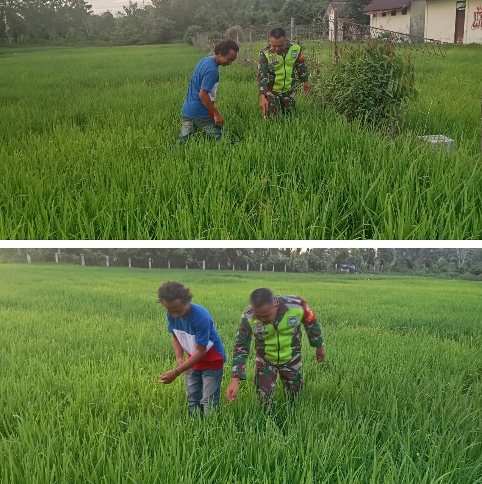 ACEH BARAT – Babinsa Posramil 06 Bubon Kodim 0105/Aceh Barat, Sertu Endi Suhendi, bersama dengan Ketua Poktan melaksanakan pemantauan perkembangan tanaman padi sawah di Desa Alue Lhok, Kecamatan Bubon, Kabupaten Aceh Barat, Rabu (11/02/2026).