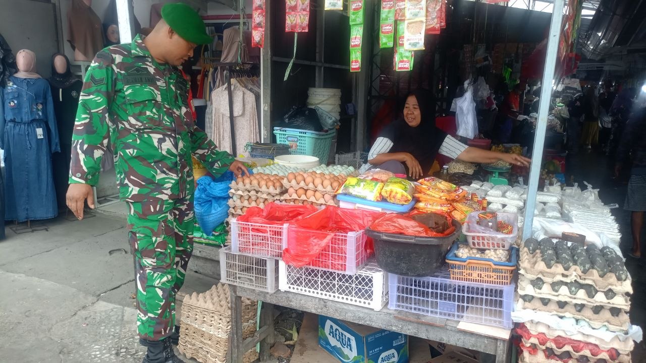 SIDRAP – Dalam rangka menjaga stabilitas ekonomi dan memastikan bahwa harga pangan tetap terjangkau oleh masyarakat, Babinsa Koramil 1420-03/Maritengngae, Sertu Herman Amal, melaksanakan pemantauan harga dan ketersediaan sembilan bahan pokok (Sembako) di Pasar Sentral Pangkajene, Kecamatan Maritengngae, Kabupaten Sidrap, pada Senin (30/03/2026).