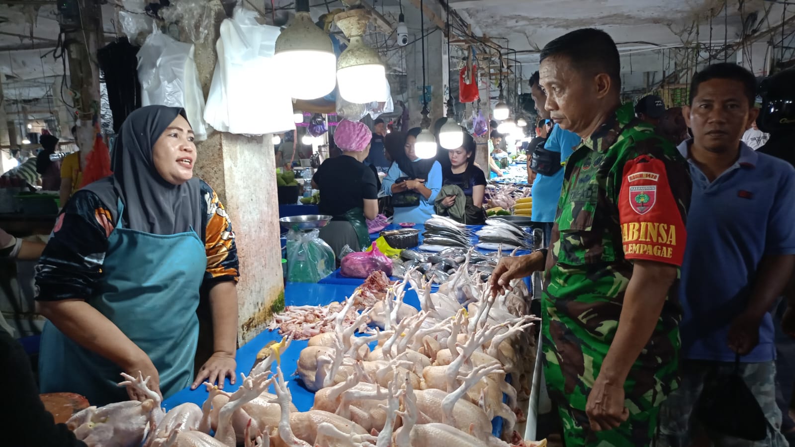 Selain memeriksa harga, Serma Ramli juga memanfaatkan kesempatan ini untuk berinteraksi dengan para pedagang dan pembeli, memberikan imbauan mengenai pentingnya keamanan dan ketertiban di lingkungan pasar.