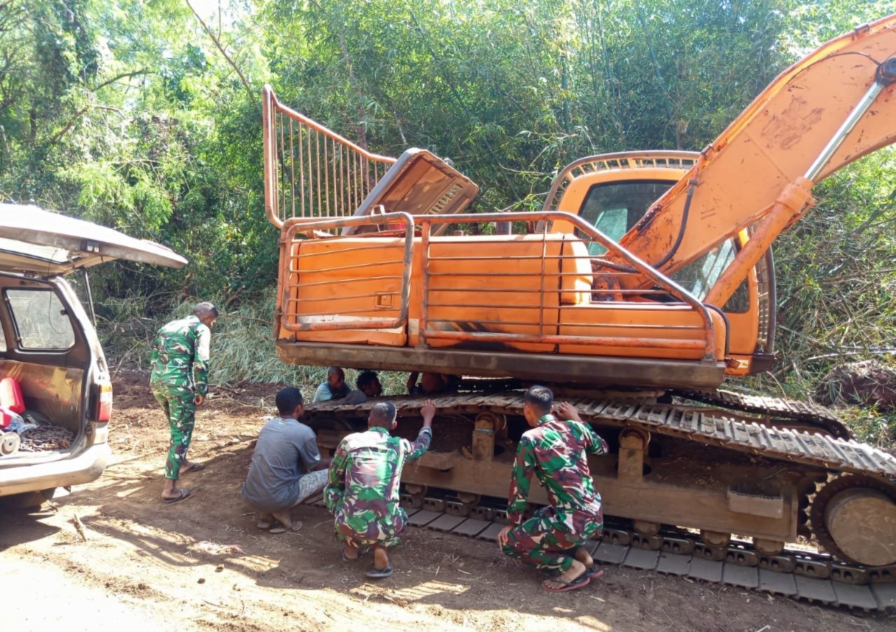 Pasi Ter Kodim 1624/Flotim Kapten Inf Ismail Ratuloli mengatakan perawatan serta pengecekan harus dilakukan agar alat berat bekerja dengan maksimal tanpa ada kendala. Sarotari, Kecamatan Larantuka, Kab. Flotim. Jumat (23/05/2025).