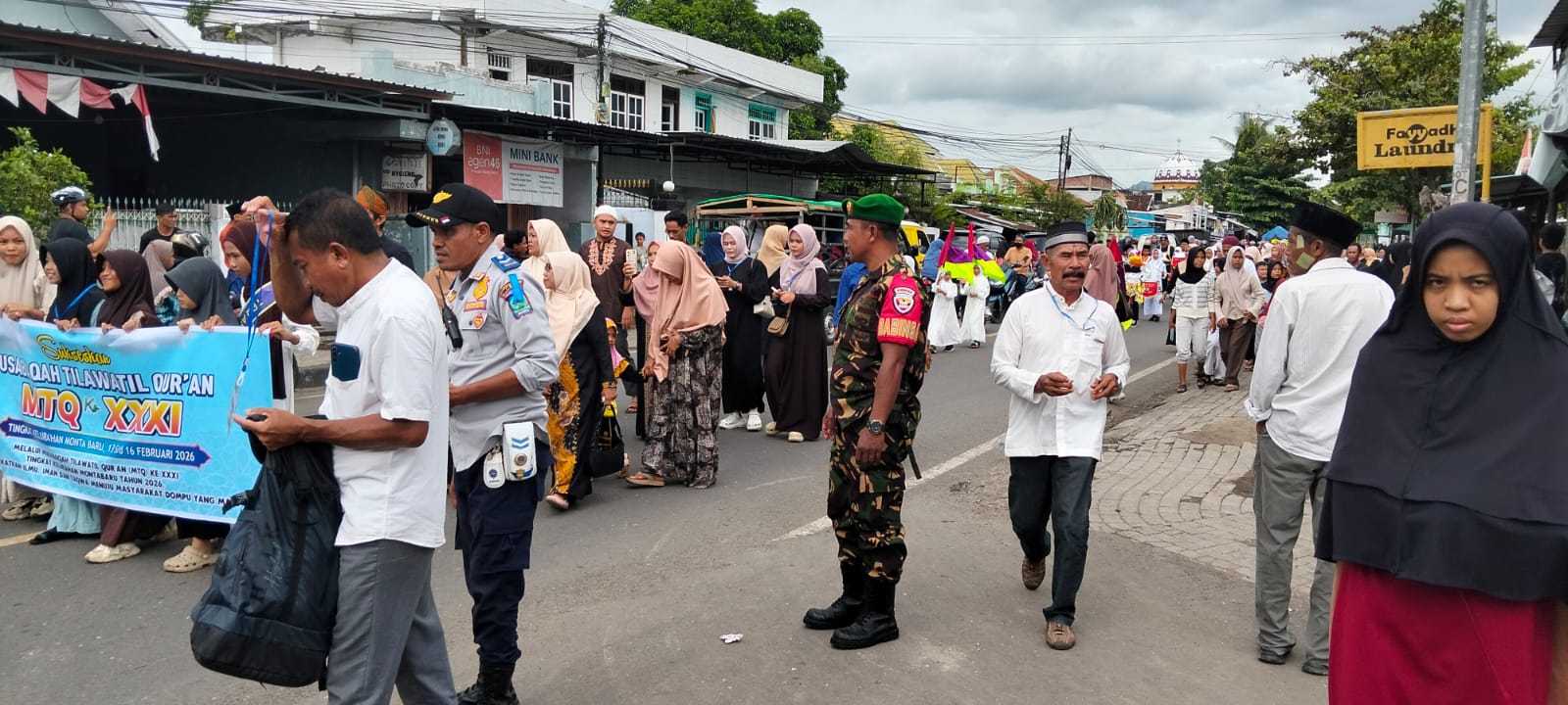 Dompu, NTB – Untuk menjamin kelancaran dan keamanan dalam rangkaian kegiatan keagamaan, Sertu Faruk, Babinsa Kelurahan Monta Baru, melaksanakan tugas pengamanan pawai Ta’aruf Musabaqah Tilawatil Qur’an (MTQ) pada hari Jumat, 13 Februari 2026. Kegiatan ini merupakan bagian dari pembukaan acara MTQ yang dijadwalkan berlangsung pada malam harinya.