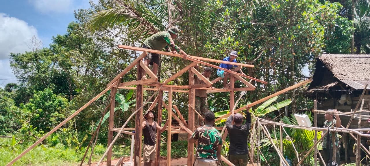Di bawah koordinasi Pasiter Kodim 1711/BVD, Kapten Inf Warsito, anggota Satgas bekerja dengan penuh semangat melakukan pemasangan tiang sebagai langkah awal pembangunan MCK. Warga setempat turut membantu proses pekerjaan dengan gotong royong, menunjukkan kebersamaan antara TNI dan rakyat.