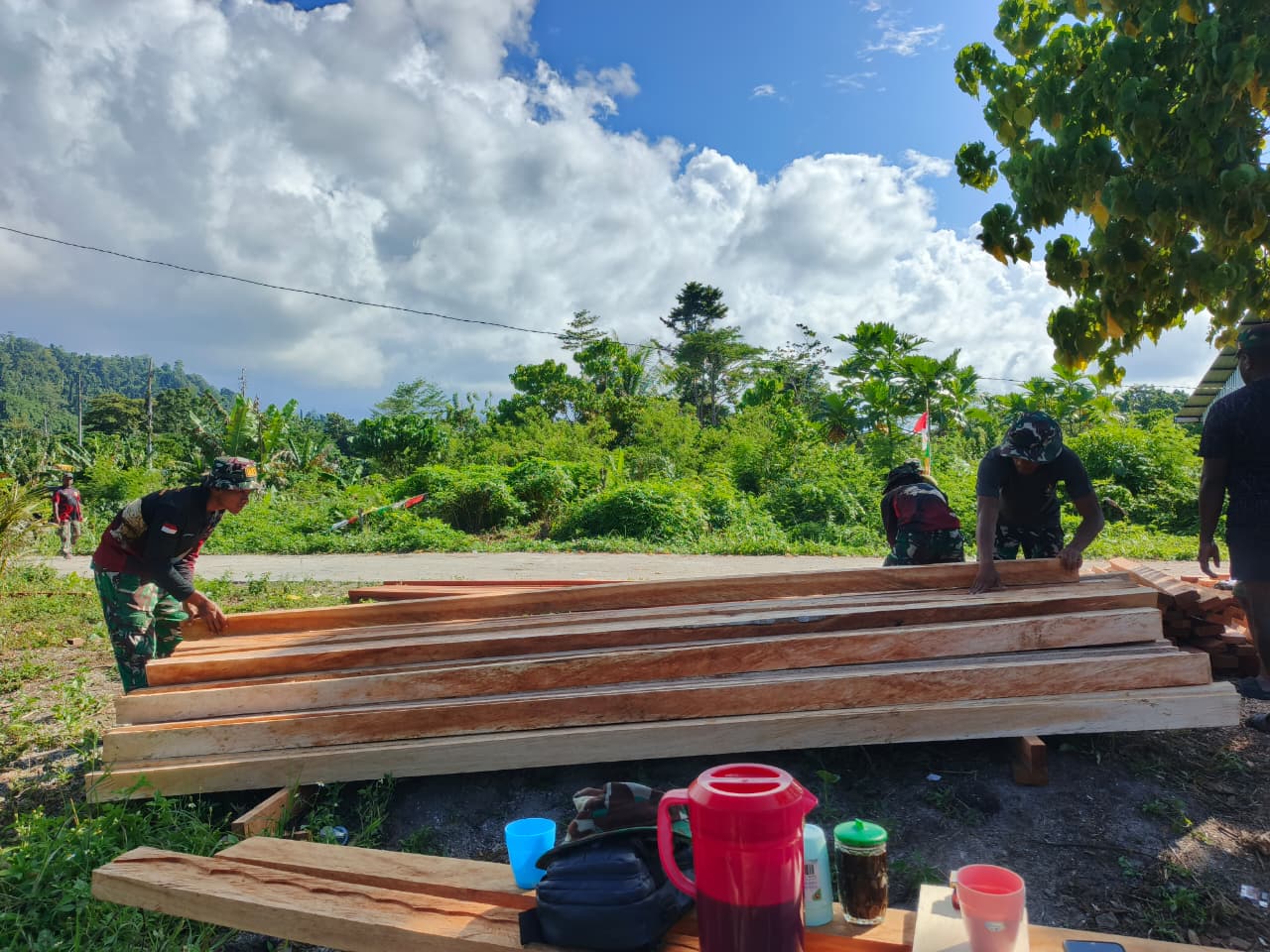 Kayu-kayu yang diperoleh telah melalui proses seleksi yang ketat dan disesuaikan dengan kebutuhan pembangunan. Personel TNI dan warga bersama-sama terlibat dalam aktivitas ini, menciptakan sinergi yang baik dalam mendukung proyek pembangunan.