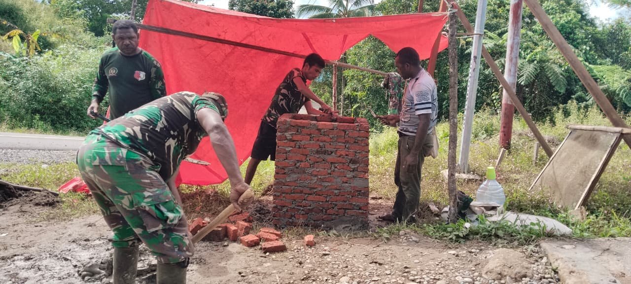 Dengan semangat gotong royong, prajurit TNI dan warga menyusun bata demi bata dengan penuh kehati-hatian agar hasilnya rapi dan kokoh. Meski cuaca panas menyelimuti kawasan Waropko, hal itu tidak menyurutkan semangat mereka untuk menyelesaikan pembangunan tepat waktu.