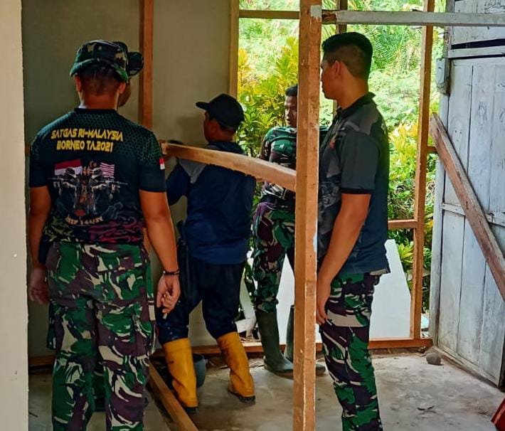Proses pemasangan kerangka kayu ini dikerjakan secara bergantian oleh personel satgas TMMD dan warga yang turut membantu. Kerja sama yang terjalin membuat tahapan ini dapat berjalan lebih cepat dan rapi, sesuai target waktu yang telah ditentukan.