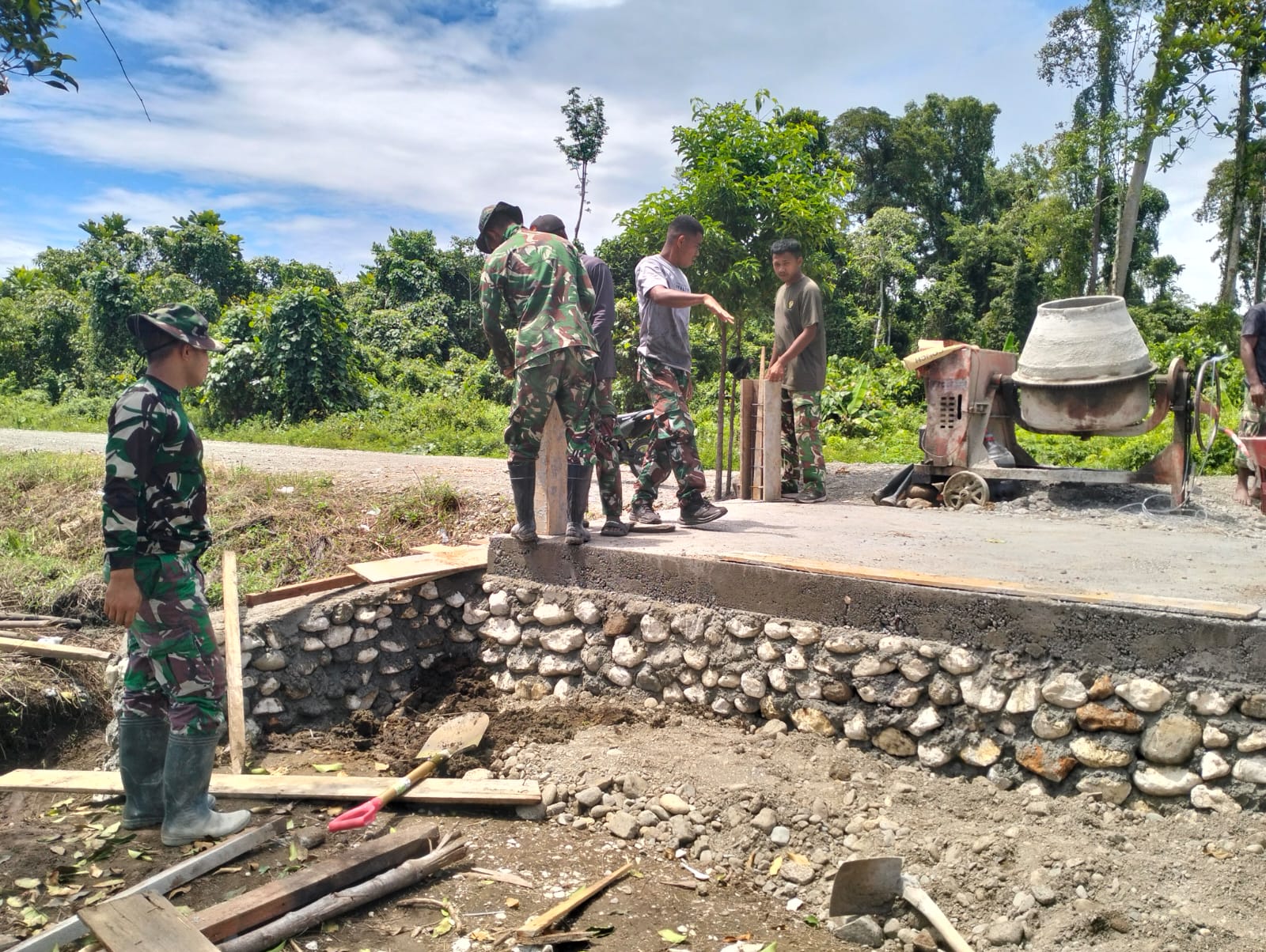 Dengan semangat kerjasama yang tinggi, para prajurit berkolaborasi dengan masyarakat setempat untuk menyelesaikan pekerjaan demi menghadirkan akses transportasi yang lebih baik bagi warga.