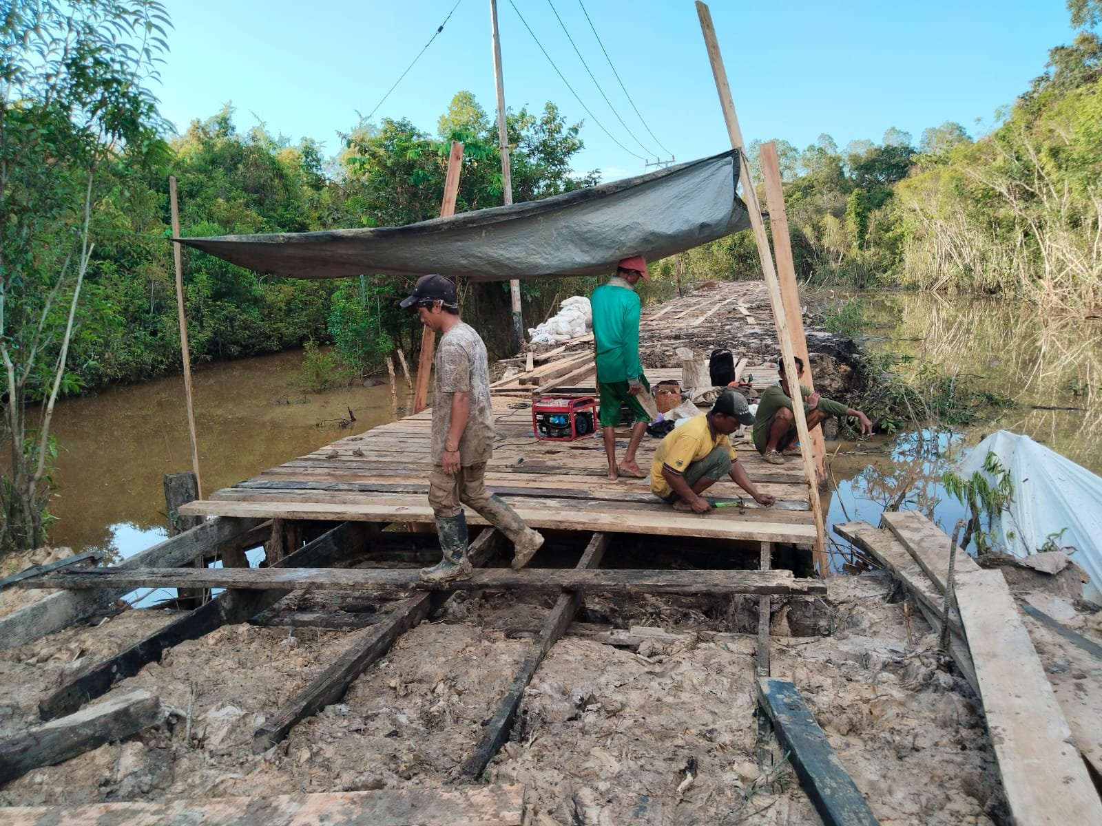 Barito Selatan, 29 Mei 2025 Pemasangan papan jembatan di Desa Talio, Kecamatan Karau Kuala, Kabupaten Barito Selatan, kembali dilakukan hari ini sebagai bagian dari upaya memperbaiki infrastruktur desa yang rusak akibat hujan deras beberapa waktu lalu. Kegiatan ini dilaksanakan oleh tim Satgas yang bertugas di wilayah tersebut.