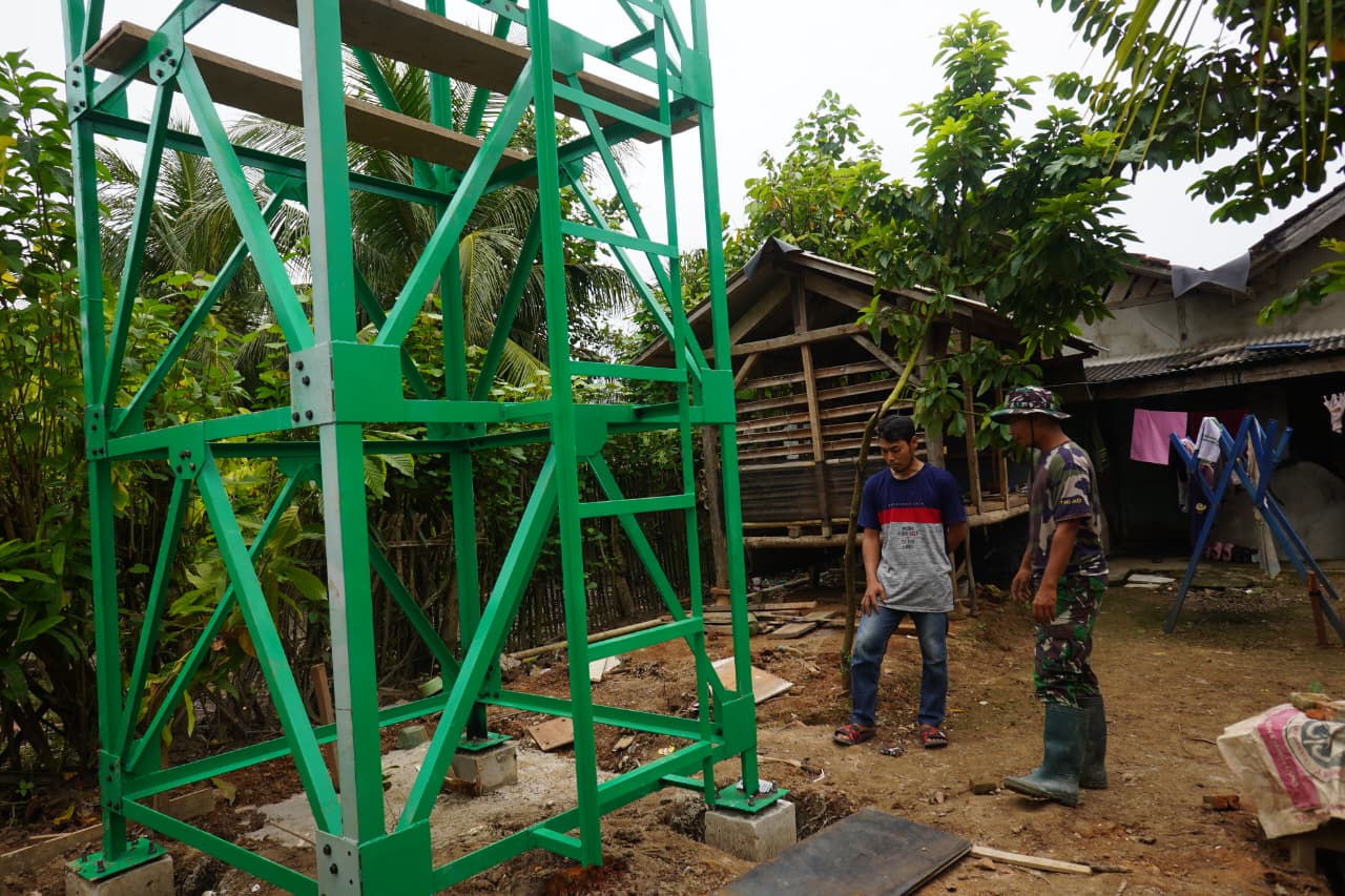 Anggota Satgas TMMD dari Kodim 0421/Lampung Selatan, bersama dengan masyarakat setempat, melaksanakan pembangunan tiang tower dengan penuh ketelitian dan semangat gotong royong. Struktur baja yang dipasang dengan kokoh ini dirancang untuk menjadi penyangga tangki air, sehingga distribusi air bersih dapat menjangkau seluruh penduduk dengan lebih baik.
