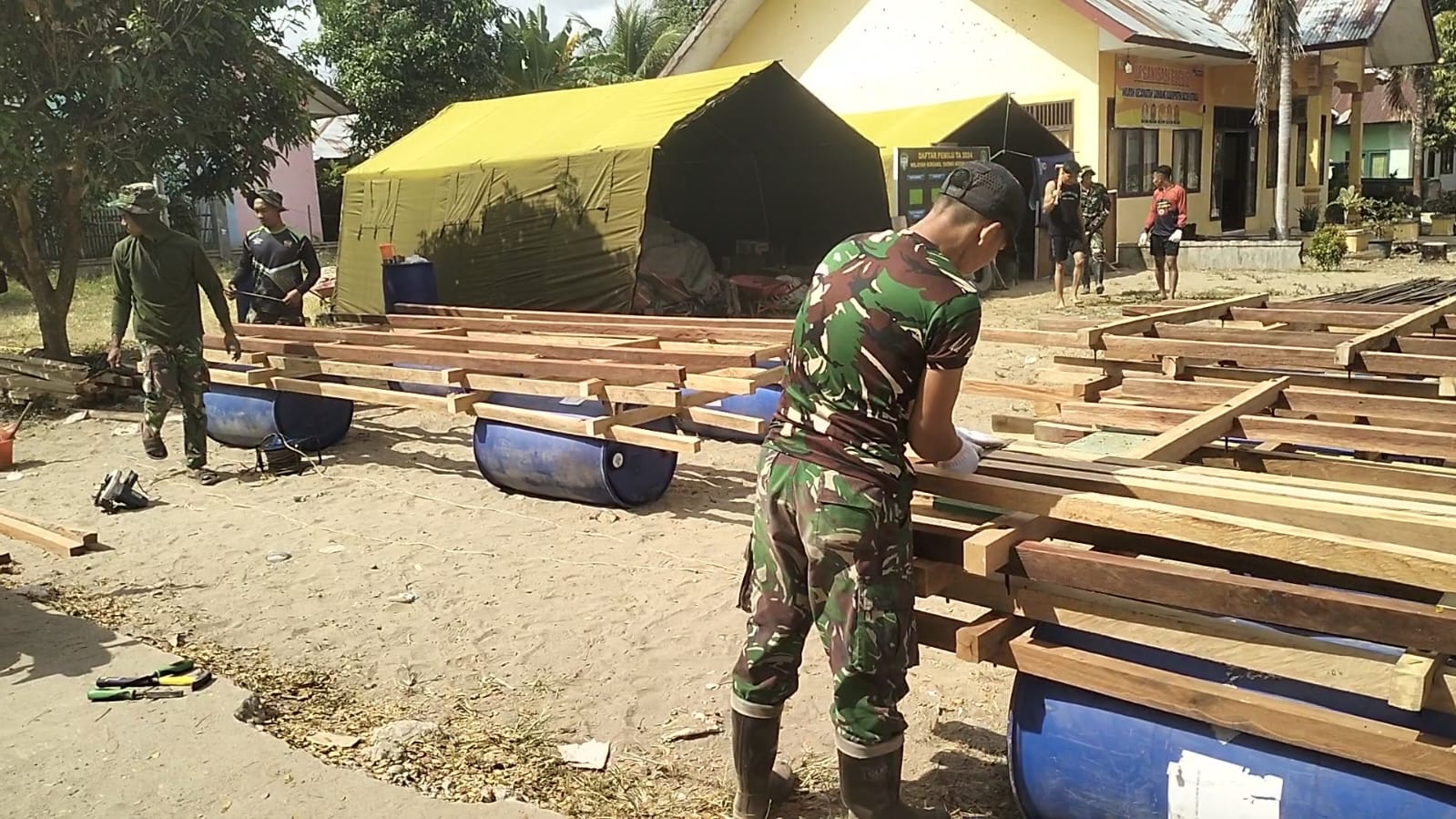 Saat ini, progres pembangunan telah mencapai 16 persen. Fokus pengerjaan yang dilakukan oleh para prajurit termasuk perakitan rangka drum sebagai penyangga utama jembatan serta pemasangan drum-drum tersebut ke dalam rangka yang telah disiapkan dengan cermat di tepi aliran air.