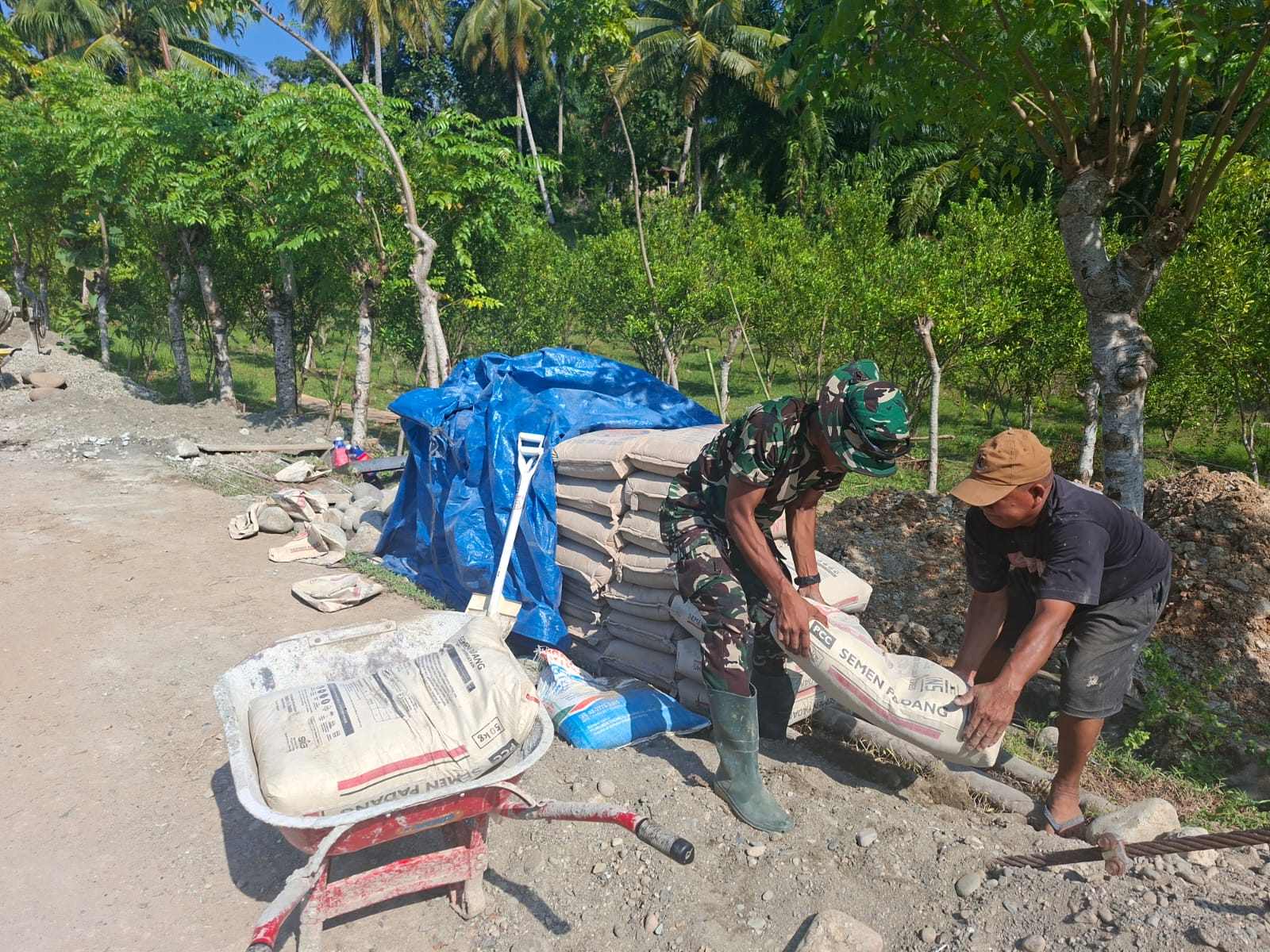 Aktivitas gotong royong ini diwarnai dengan pengecoran tiang-tiang jembatan gantung, di mana para anggota Satgas bersama warga desa bahu-membahu dalam melaksanakan tugas ini.
