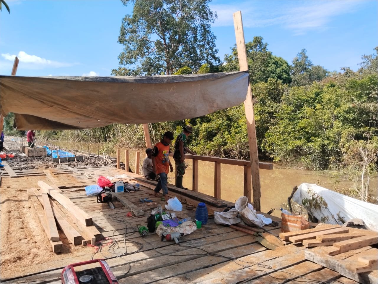 Dansatgas TMMD Reguler Ke-124 Kodim 1012/Btk Letkol Inf Langgeng Pujut Santoso, S.E., M.Han. mengatakan, “Satgas TMMD dibantu warga terus melanjutkan pembangunan jembatan, Hasil pengamatan kita, prajurit TNI bersama masyarakat terus berjibaku tanpa kenal lelah mengerjakan sasaran fisik pembuatan jembatan tersebut,”, Ucapnya