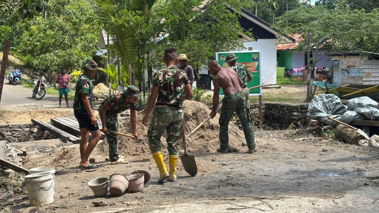 Kaimana – Proyek pembangunan jembatan dalam rangka program TNI Manunggal Membangun Desa (TMMD) ke-127 yang dikelola oleh Kodim 1804/Kaimana menunjukkan kemajuan yang signifikan. Hingga hari Selasa (03/03/2026), proses pengerjaan pondasi di kedua sisi jembatan telah mencapai 65 persen.