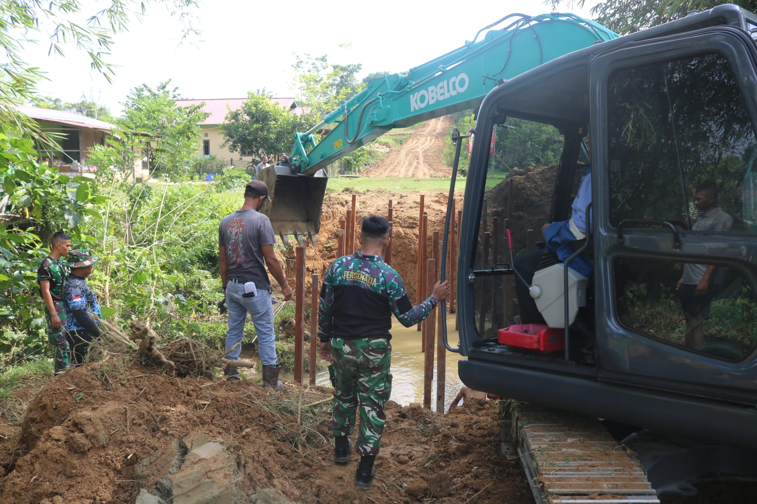 Pengerjaan jembatan ini menjadi prioritas karena menjadi satu-satunya akses penting yang menghubungkan area permukiman warga dengan lahan pertanian dan perkebunan di sekitarnya. Oleh karena itu, pemasangan tiang pancang sebagai struktur penopang utama dilakukan dengan presisi tinggi, melibatkan alat berat dan tenaga manusia, Rabu (30/07).