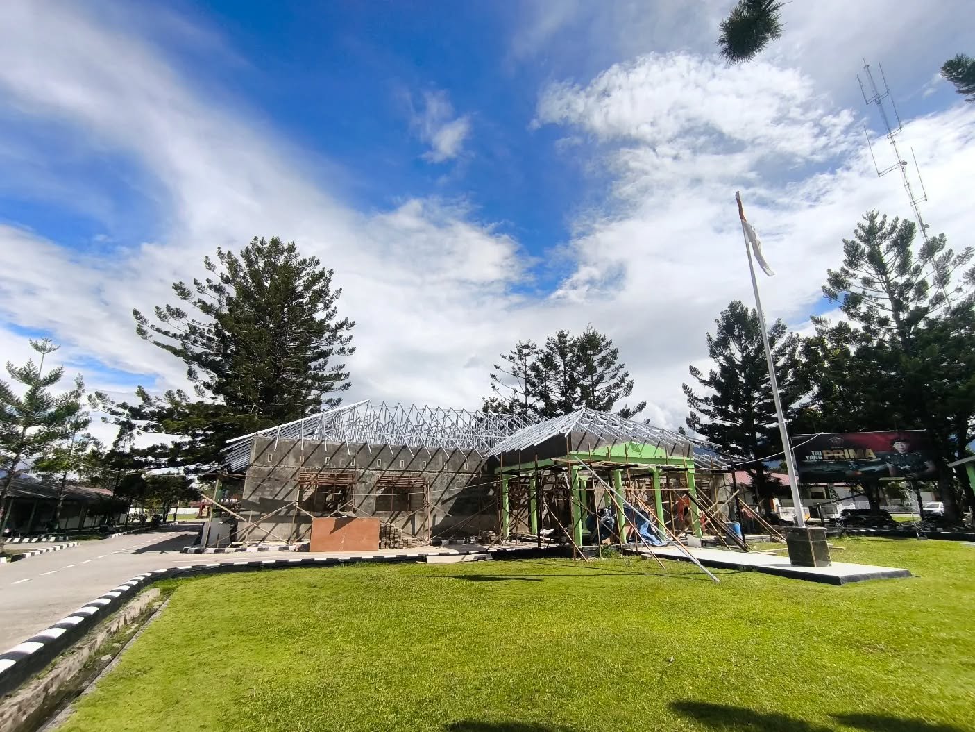 Wamena, Senin (6/10/2025) – Pembangunan Kantor Makodim 1702/Jayawijaya terus menunjukkan kemajuan yang signifikan. Memasuki minggu keenam pelaksanaan, progres pembangunan telah mencapai sekitar 50 persen dari total pekerjaan. Pembangunan ini dimulai sejak 25 Agustus 2025 dan ditargetkan selesai pada akhir November 2025.