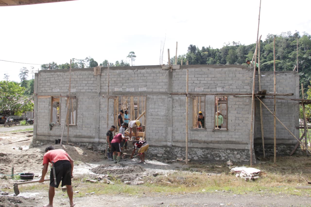 Pembangunan masjid dilaksanakan secara bertahap dengan melibatkan kerja sama antara prajurit TNI dan masyarakat lokal. Setiap fase dari pembangunan dilakukan dengan semangat gotong royong, mencerminkan kebersamaan dan solidaritas antarwarga.
