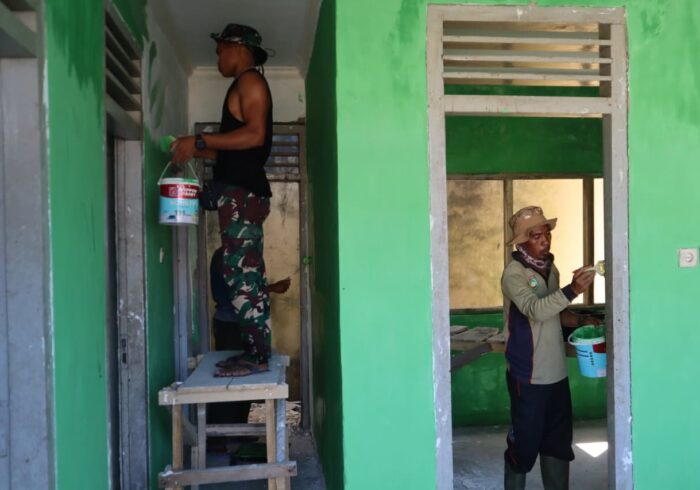 Nabire – Pekerjaan pembangunan Mandi, Cuci, Kakus (MCK) di lokasi Rehabilitasi Rumah Tidak Layak Huni (RTLH) Perumahan 100, Kampung Manunggal Jaya, Legari SP4, Distrik Makimi, Kabupaten Nabire, terus dikebut penyelesaiannya oleh Satgas TMMD ke-125 TA 2025 Kodim 1705/Nabire bersama masyarakat.