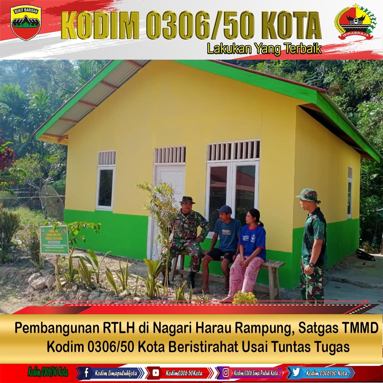 Lima Puluh Kota – Pembangunan Rumah Tidak Layak Huni (RTLH) di Nagari Harau Kecamatan Harau Kabupaten 50 Kota yang menjadi salah satu sasaran fisik dari kegiatan TNI Manunggal Membangun Desa (TMMD) ke 124 oleh Kodim 0306/50 Kota telah selesai dengan sukses.