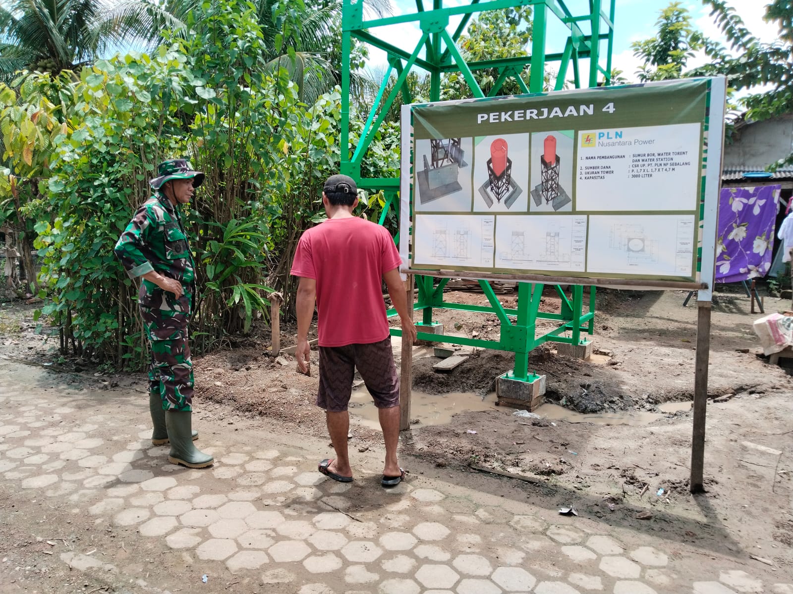 Pemasangan tower ini memiliki peranan krusial dalam sistem instalasi sumur bor, dengan fungsi utama untuk mendukung peralatan yang digunakan dalam menarik air dari dalam tanah. Anggota Satgas TMMD bekerja sama dengan masyarakat setempat dengan penuh ketelitian dan kehati-hatian, memastikan bahwa seluruh instalasi dapat terpasang secara kokoh dan aman.