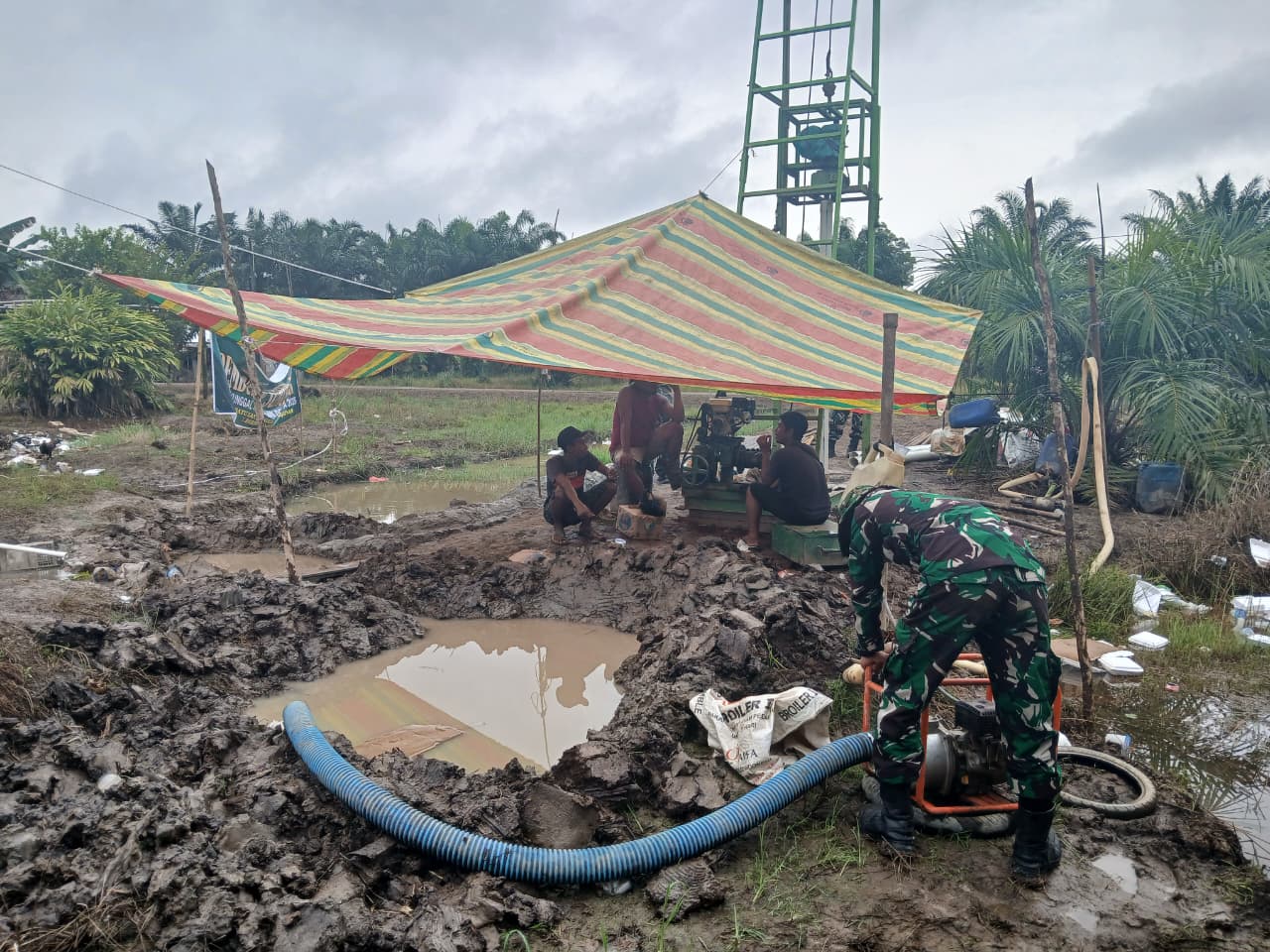 Pembangunan Sumur Bor Titik Ketiga oleh Satgas TMMD 127 Kodim 0430/Banyuasin Memasuki Tahap Penyelesaian