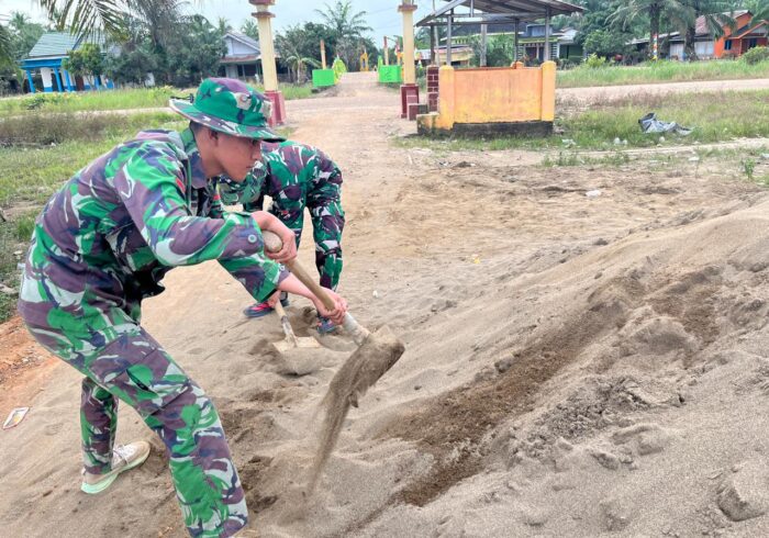Personel Satuan Tugas TNI Manunggal Membangun Desa (TMMD) dari Kodim 0421/Lampung Selatan berkolaborasi dengan masyarakat setempat dalam proses pendirian tiang tower tersebut. Kegiatan ini dilakukan dengan penuh ketelitian dan semangat gotong royong, di mana setiap sambungan diperiksa secara cermat dan dikencangkan untuk memastikan struktur tiang berdiri dengan kokoh dan aman.
