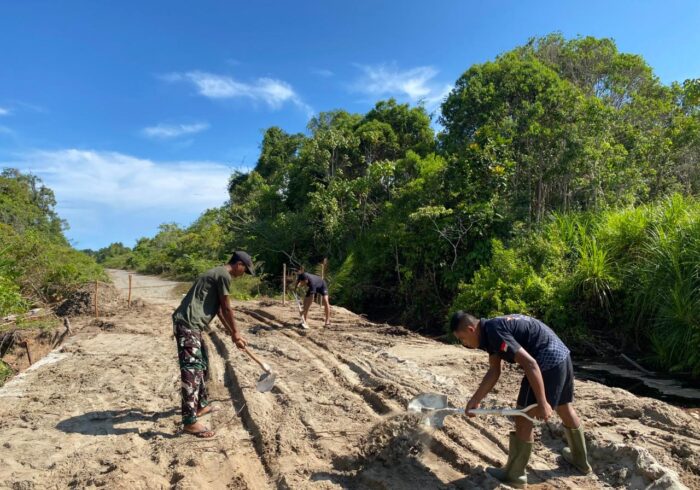 Tulang Bawang – Kegiatan fisik program TNI Manunggal Membangun Desa (TMMD) ke-125 Kodim 0426/Tulang Bawang terus berjalan di Kampung Moris Jaya, Kecamatan Banjar Agung, Kabupaten Tulang Bawang.