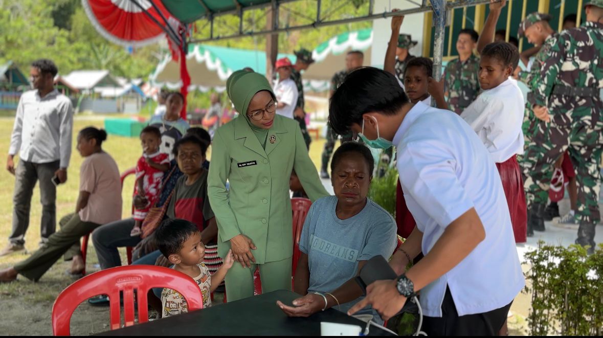Kaimana – Dalam rangka pelaksanaan program TNI Manunggal Membangun Desa (TMMD) ke-127, Ketua Persit Kartika Chandra Kirana Cabang XL Kodim 1804/Kaimana bersama anggota Kodim 1804/Kaimana dan tenaga medis dari Puskesmas Kaimana melaksanakan pemeriksaan kesehatan serta pengobatan gratis untuk masyarakat di Kampung Marsi, Distrik Kaimana, Kabupaten Kaimana, pada Rabu, 11 Maret 2026.