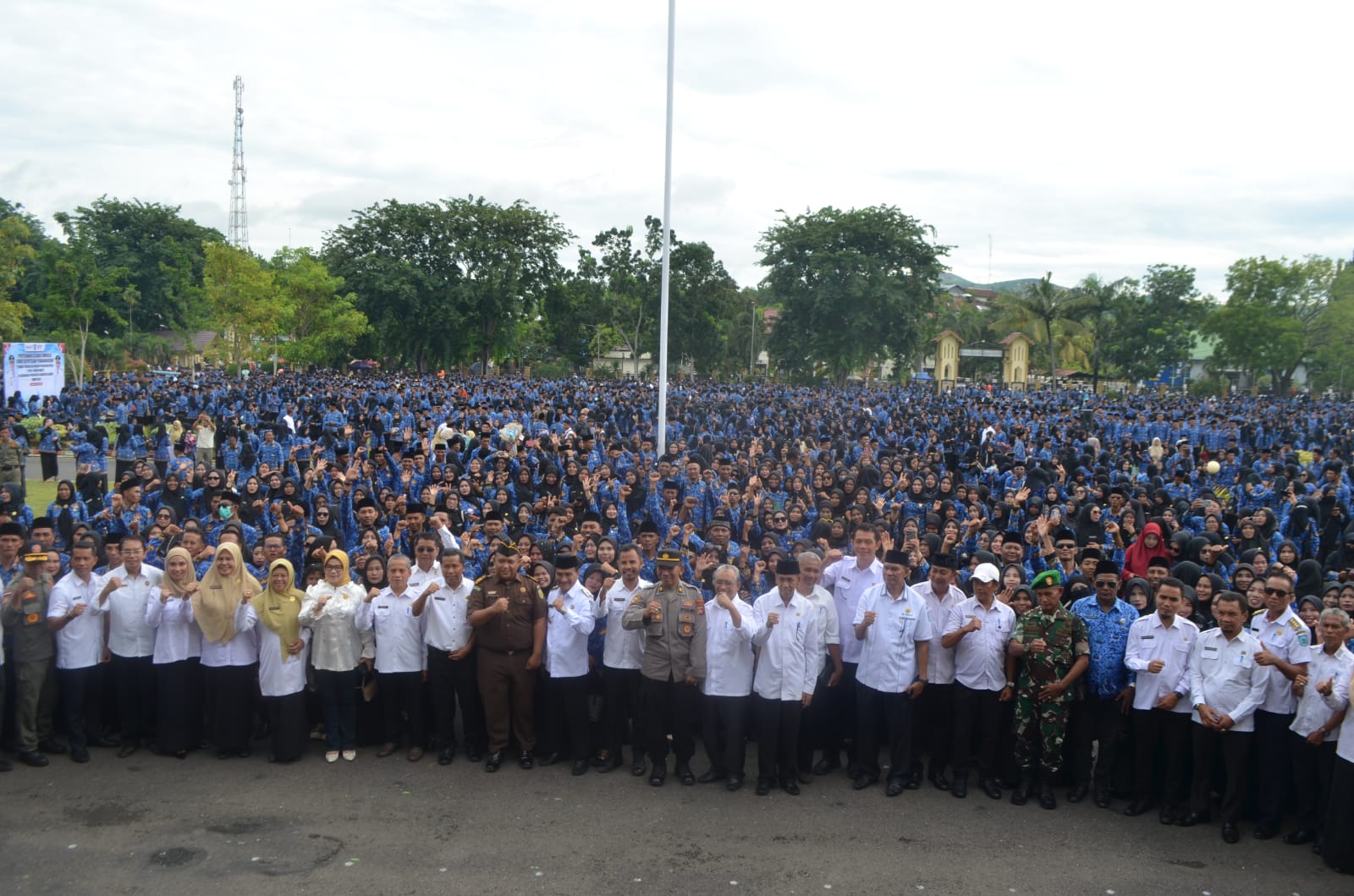 Kegiatan ini dihadiri oleh sekitar 5.387 pegawai PPPK dari berbagai perangkat daerah, mencerminkan komitmen pemerintah dalam meningkatkan kualitas sumber daya aparatur. Turut hadir dalam acara tersebut Wakil Bupati Dompu Syrajuddin, S.H., serta berbagai unsur Forkopimda, termasuk Danramil 1614-01 Dompu, Kapten Inf Ilham, yang menunjukkan sinergi kuat antara TNI-Polri dan pemerintah.