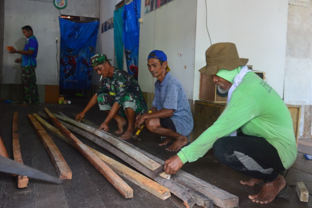 Pemilahan Balok Kayu untuk RTLH dalam TMMD