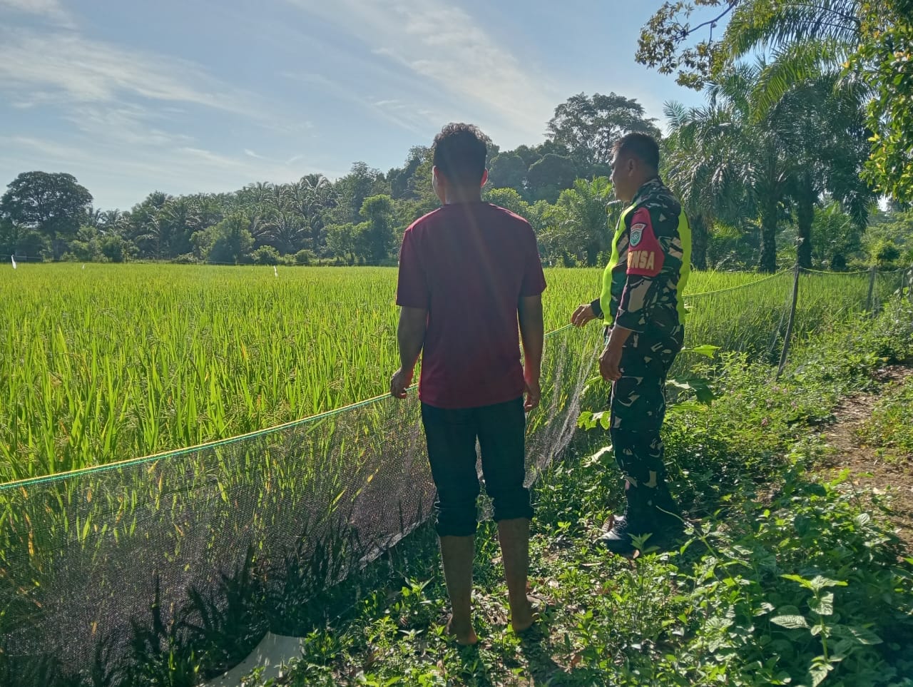 Pada kesempatan tersebut, Serka Zulpan turun langsung ke areal persawahan untuk memantau perkembangan pertumbuhan padi milik warga binaan. Kegiatan ini merupakan bentuk perhatian dan kepedulian Babinsa terhadap para petani, sekaligus memastikan kondisi tanaman padi tetap terjaga dengan baik sehingga dapat memberikan hasil panen yang maksimal.