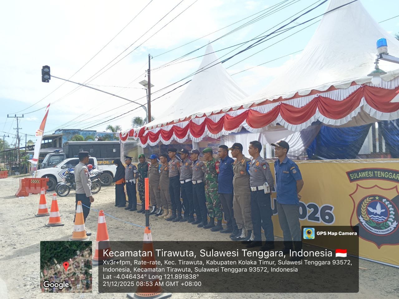 Kolaka Timur, 21 Desember 2025 – Dalam rangka menyambut perayaan Natal dan Tahun Baru 2026, Sertu Akbar dari Koramil Rate-Rate menggalang kegiatan pengamanan yang melibatkan berbagai instansi terkait. Pengamanan ini berlangsung di Rest Area Kelurahan Rate-Rate, Kabupaten Kolaka Timur, sebagai langkah preventif untuk menjamin ketenangan masyarakat yang merayakan momen spesial ini.