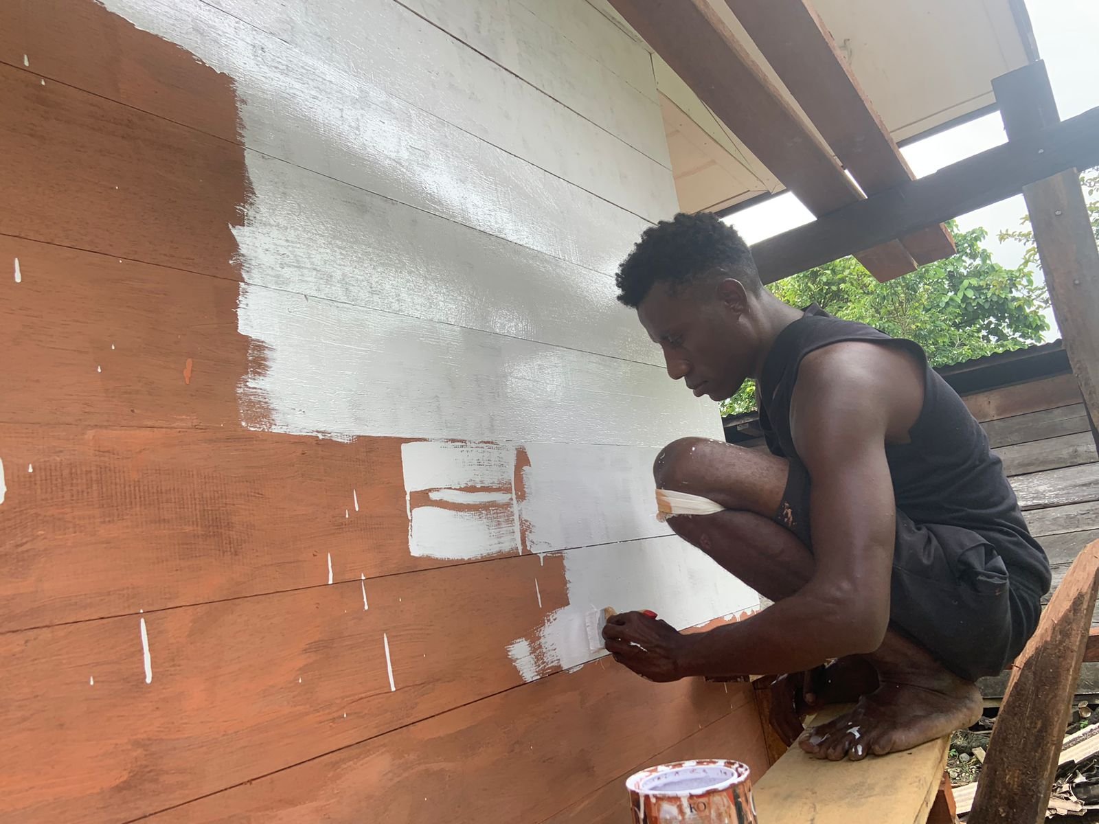 Pengecatan ini merupakan bagian dari tahapan finishing yang memiliki dua tujuan utama, yaitu mempercantik tampilan rumah dan melindungi struktur bangunan dari cuaca ekstrem yang kerap terjadi di wilayah Papua Tengah. Dinding yang telah dicat akan lebih tahan terhadap hujan, panas, dan kelembapan.